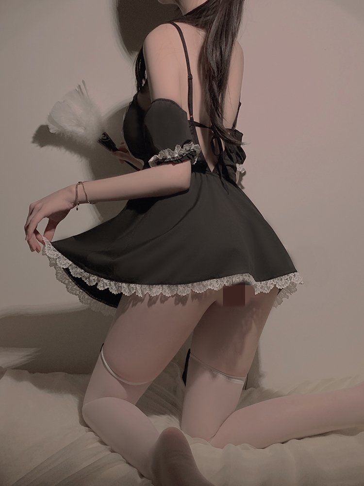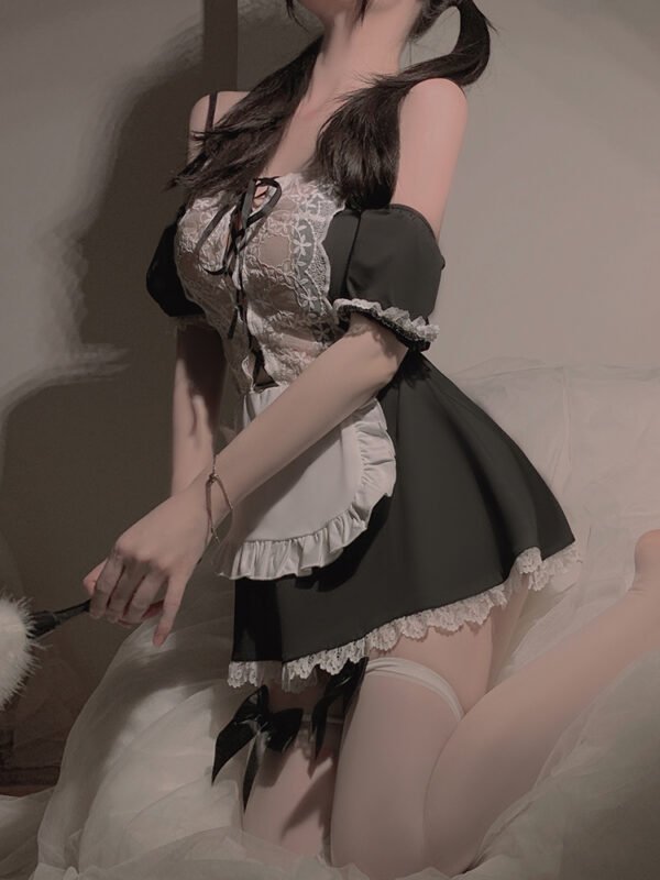 -Gentle mesh lace stitching, let the docile maid be sexy