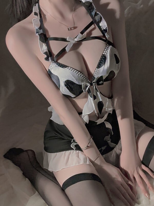 -Cow clothes with black and white printing, chest cross decoration with hollow