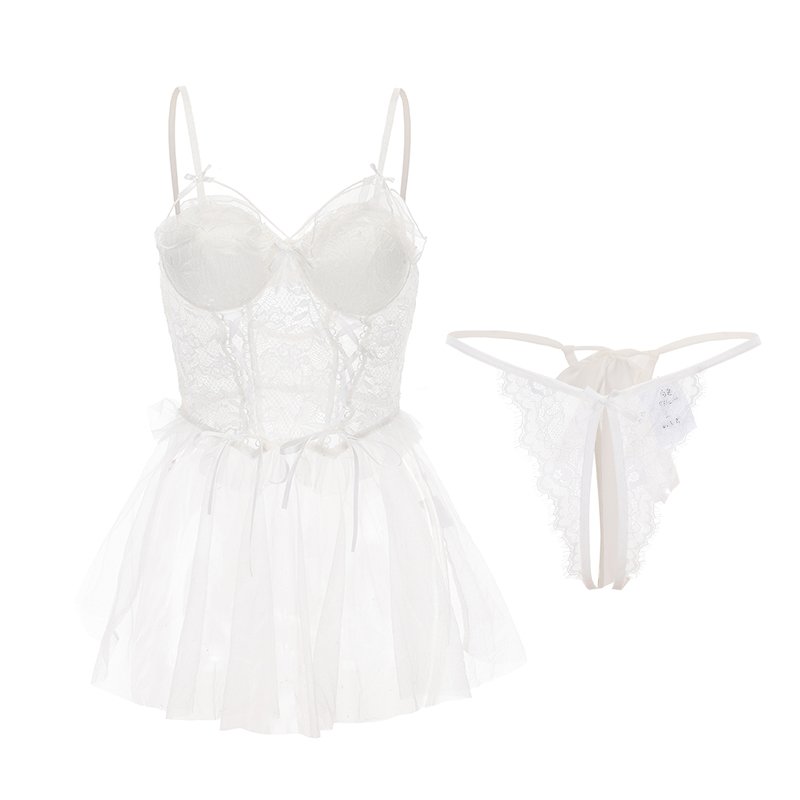 Wearing a lace soft gauze waistcoat skirt, she has both the romantic charm of an angel and the flirtatious temperament of a witch.