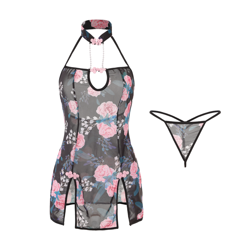 Gentle double-split, full of design sense, assisted by pink handicap, retaining the charm of cheongsam.