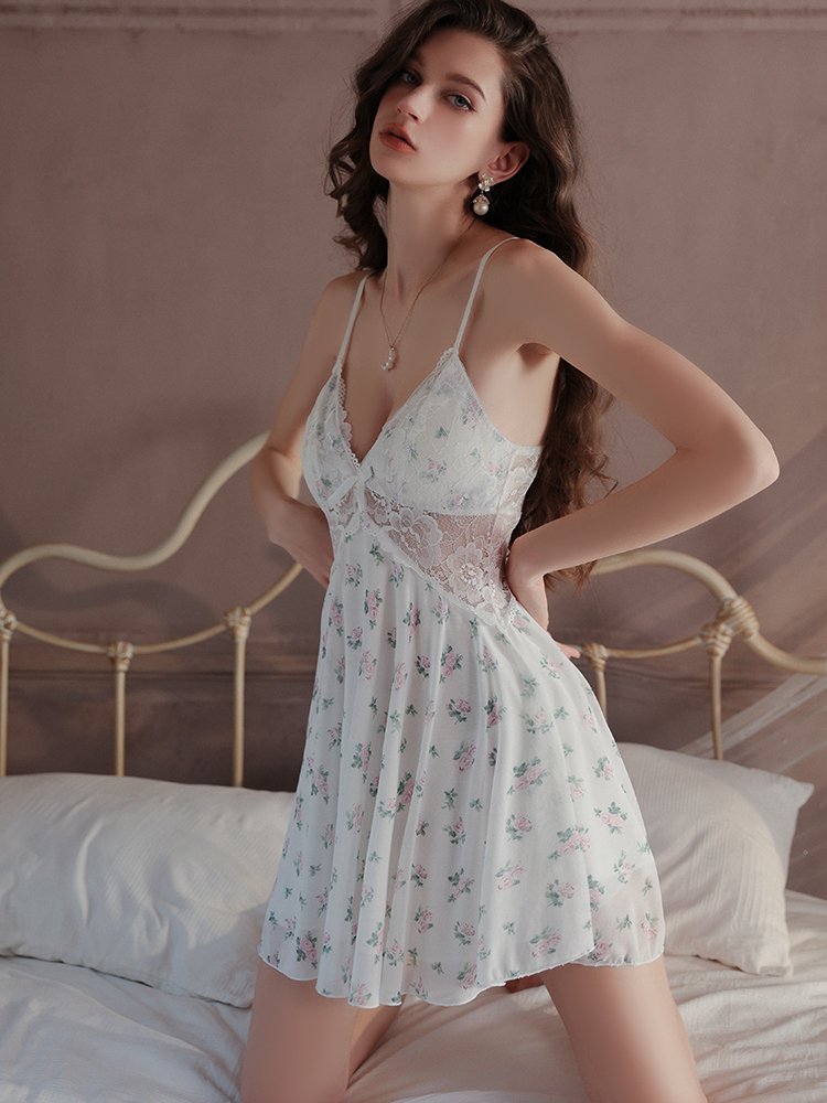 Soft skin-friendly fabric, pink and fragrant muscles can be faintly outlined in the skirt, picturesque and beautiful. The blessing of clear lace is more tempting.