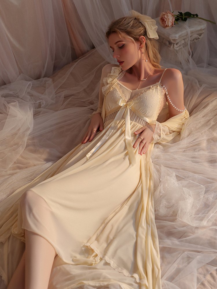 French robe, pink and fragrant muscles are faintly visible.