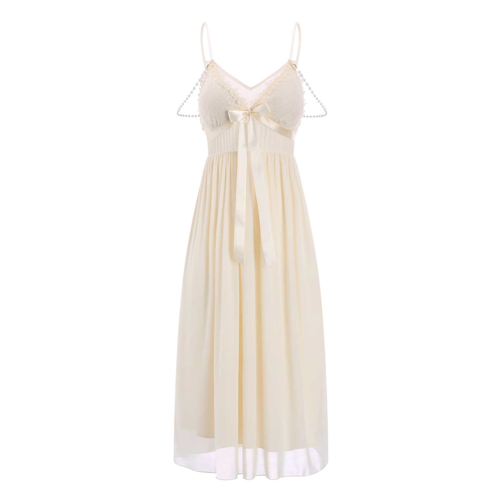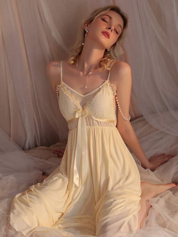 The clear tulle brings smart and elegant, and the pearl chain outlines the curve of the shoulders and neck.